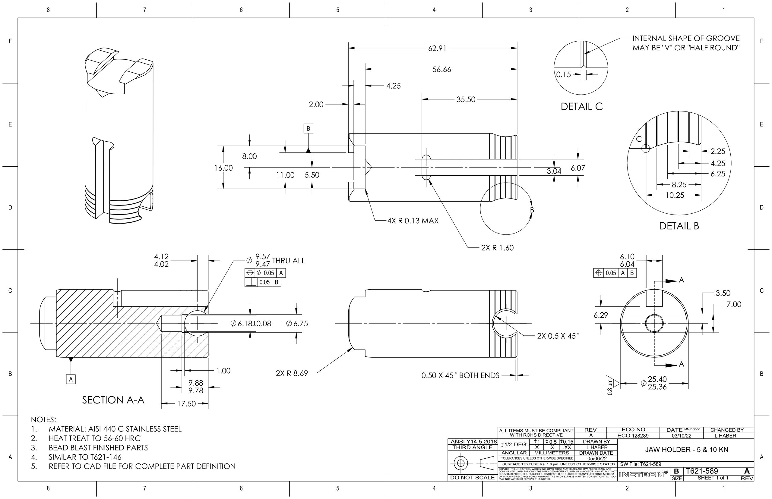 During my first co-op where I worked as a sustaining engineer at Instron, one of the biggest projects I worked on was the re-design of the inner mechanics of their 10kN pneumatic grip.